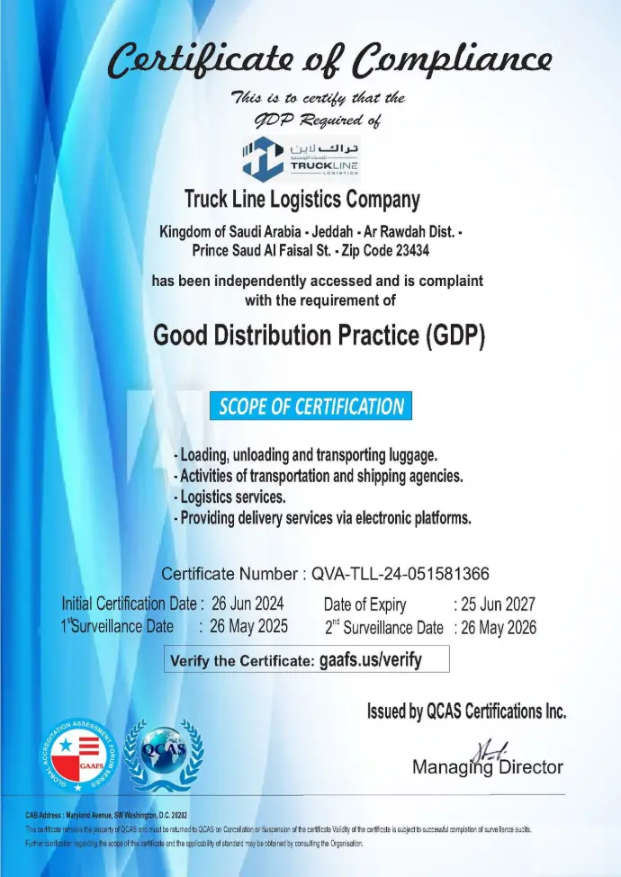 We are GDP certified, ensuring compliance with Good Distribution Practices for the safe and efficient handling of sensitive goods like pharmaceuticals and perishables.
